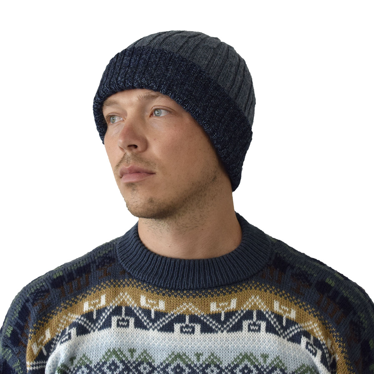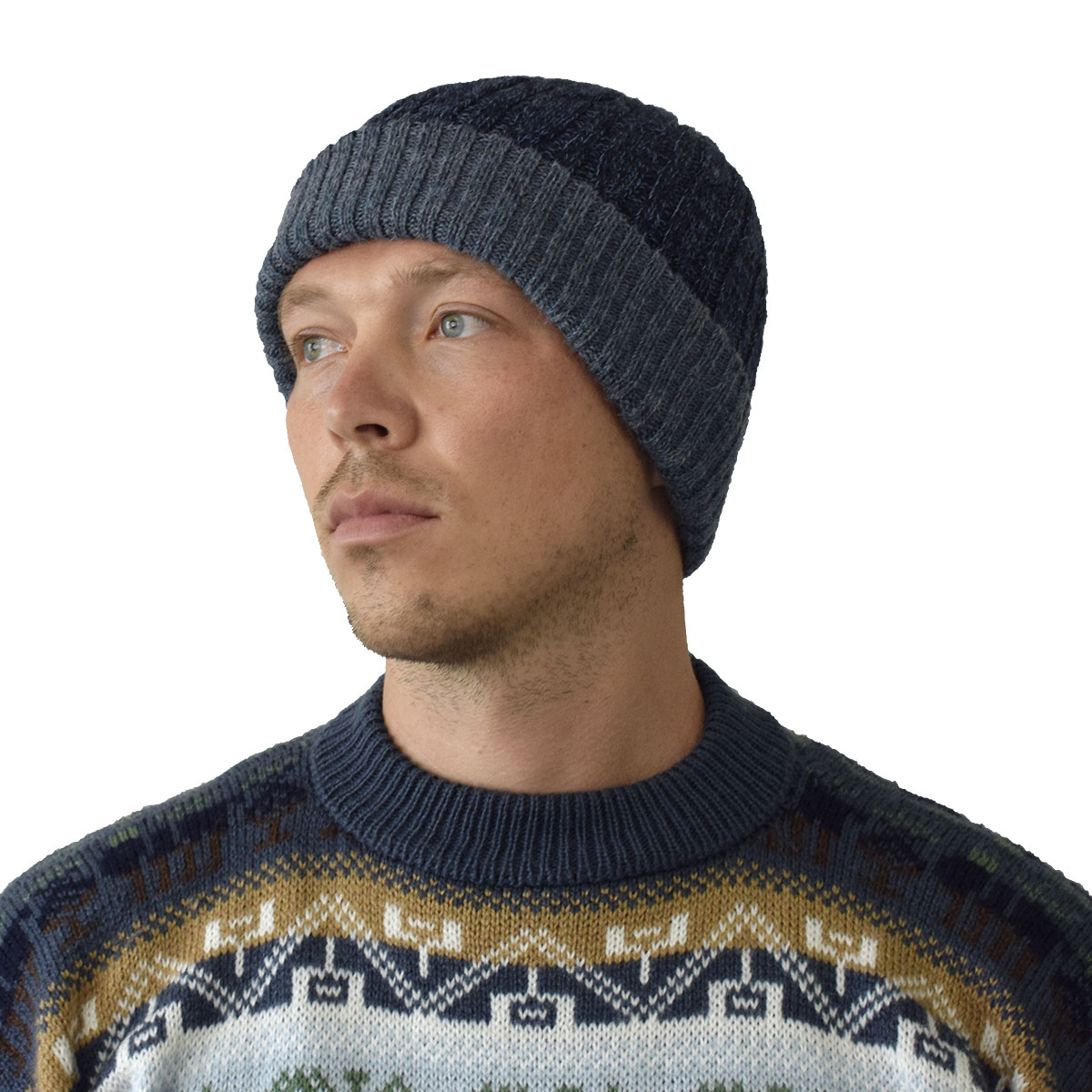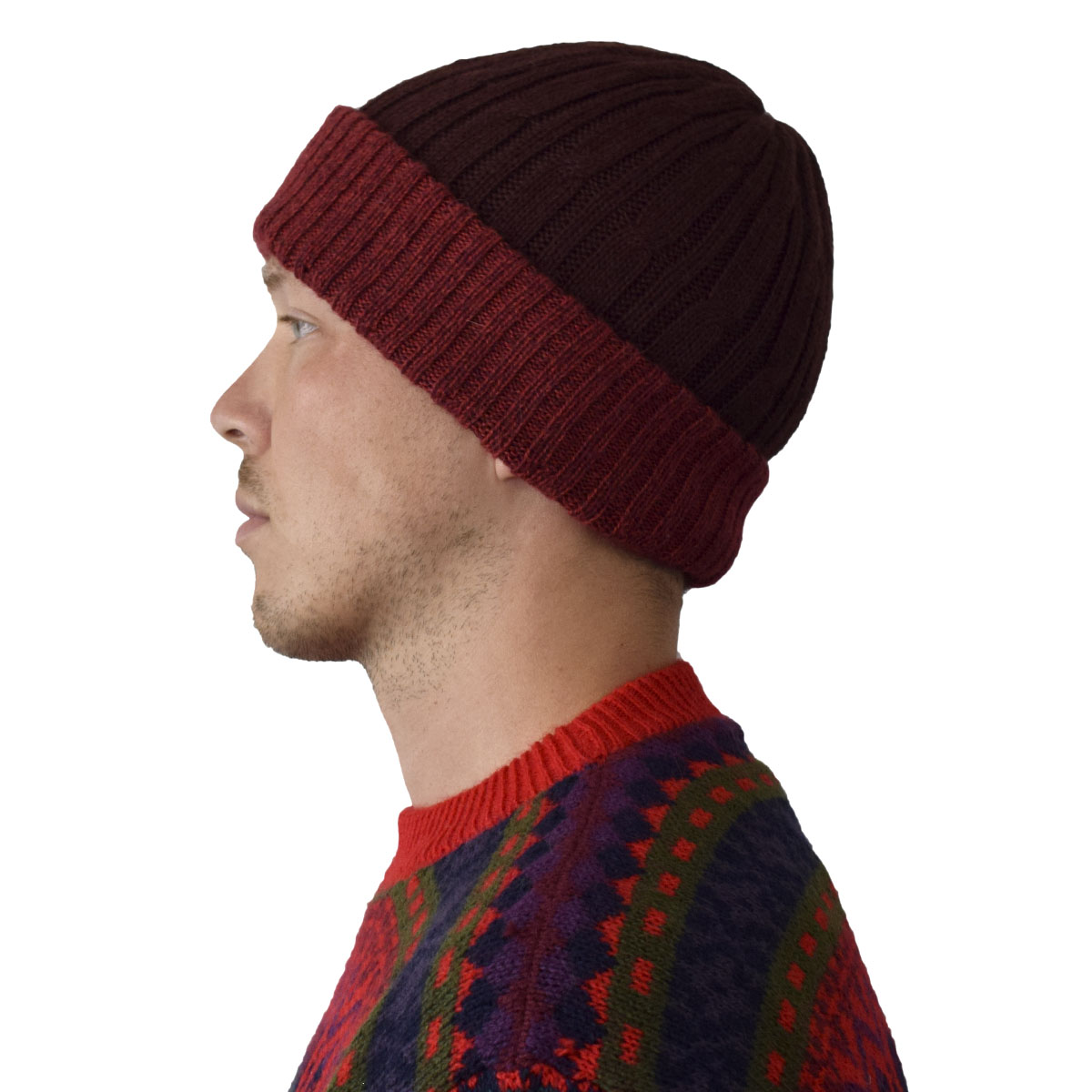 Knit cuffed benie for winter. Made of 60% alpaca fiber.