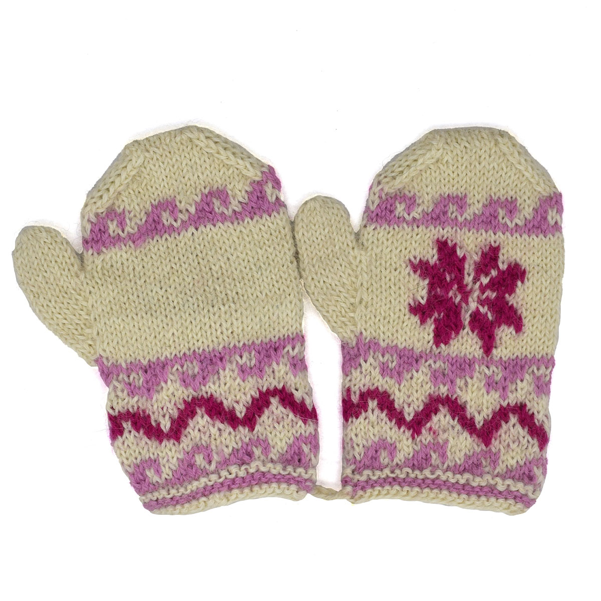 Handmade mitten made of 100% superfine alpaca. This mitten comes in two mixes of colors: cream (pink and fuchsia) and anthracite gray (gray and fuchsia).