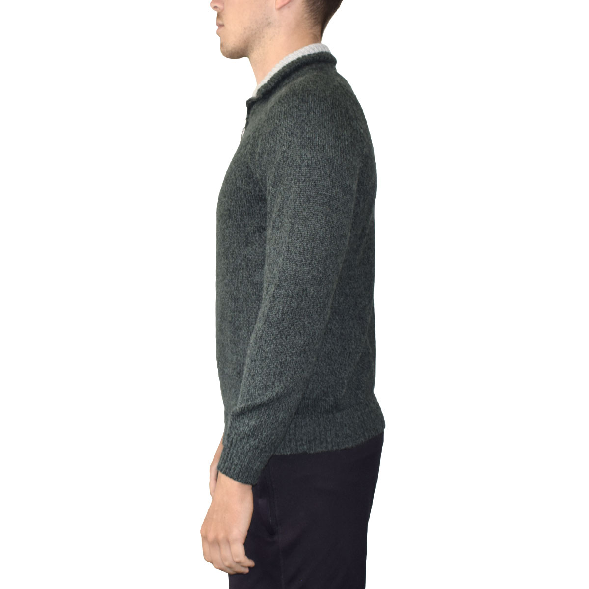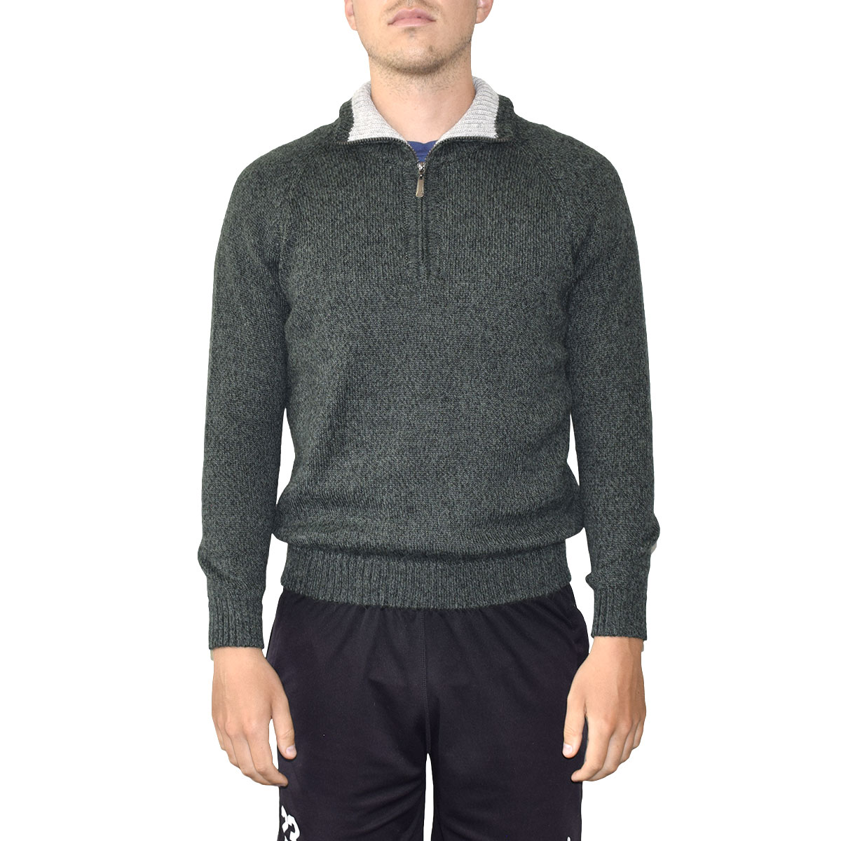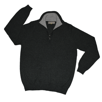 Turtleneck sweater with zipper made of 60% baby alpaca fiber.