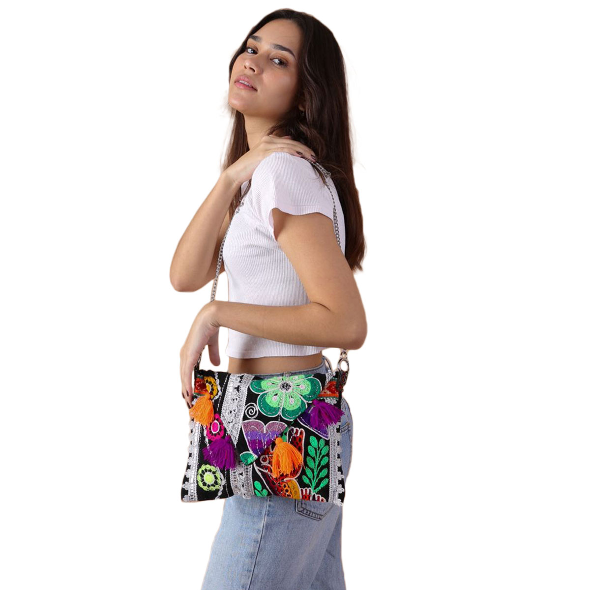 Colorful-Andean crossbody chain clutch