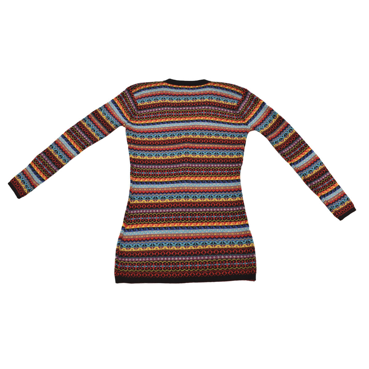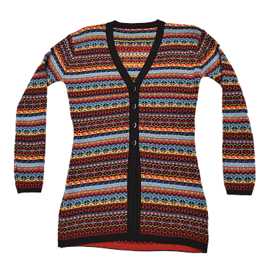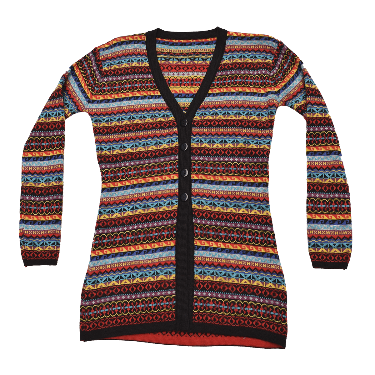 Multicolor long striped blazer made of Peruvian fibers with black borders.