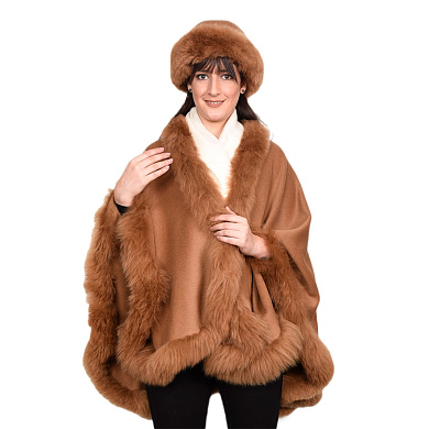 Baby alpaca cape with fur trim.