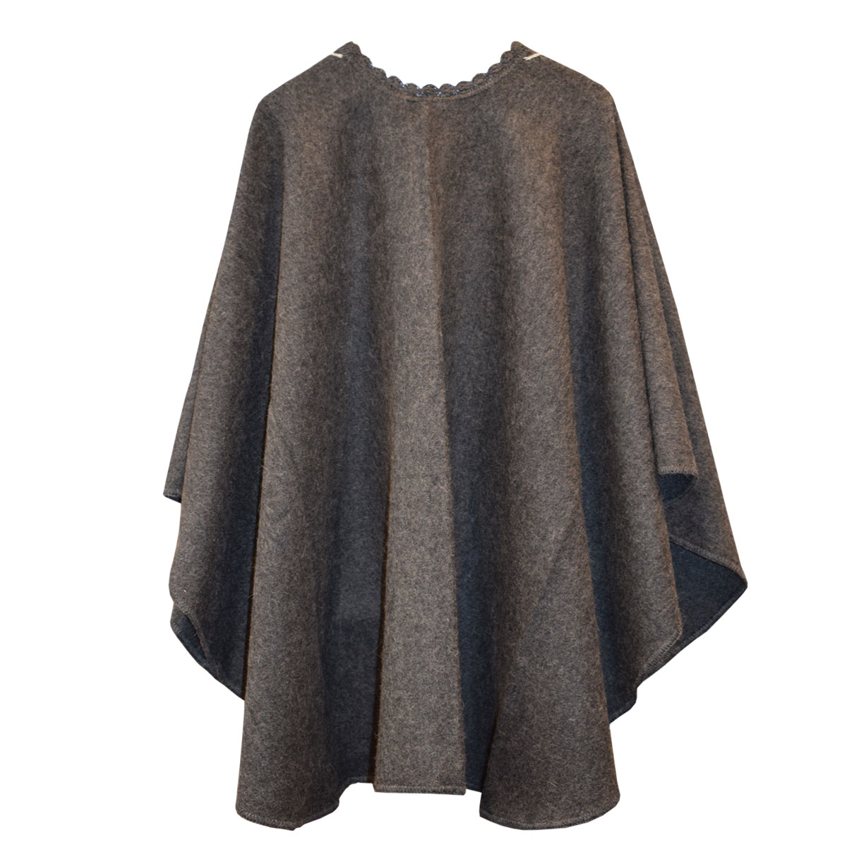 Loose-knit poncho with embroidered made of 100% alpaca fiber. Grey. It has buttons.