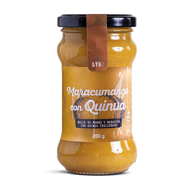 - Passion fruit, mango, quinoa, lemon juice, sucralose and pectin.