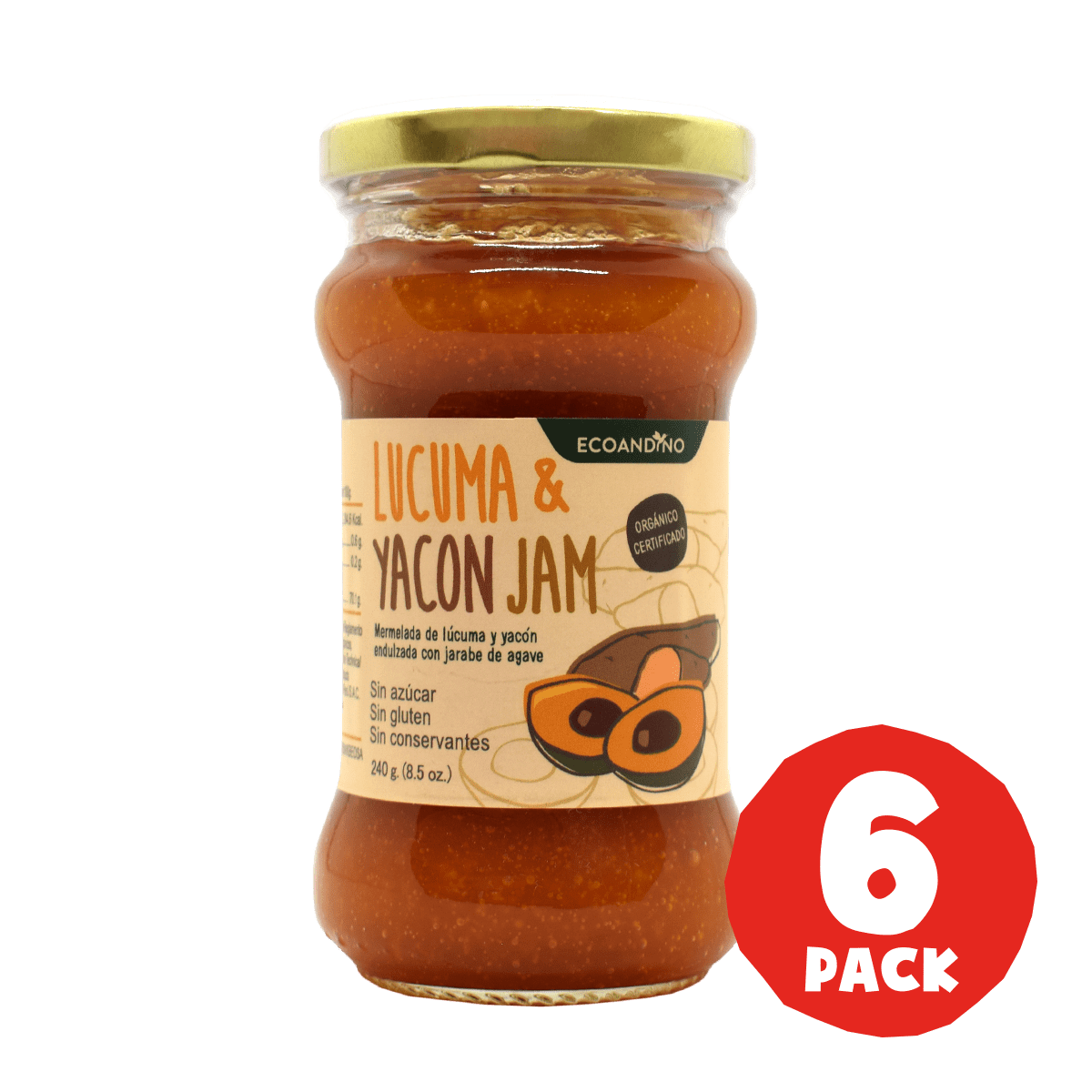 Delicious jam made from lucuma, a fruit from the Andes, appreciated for its delicate aroma, delicious flavor, and good antioxidant properties. This jam is also made with yacon, a natural and rich source of FOS (fructooligosaccharides). In addition, it is an excellent natural prebiotic sweetened with low glycemic index agave syrup to be enjoyed at any time of the day. Lucuma contains high-quality minerals, vitamins, and antioxidants that support skin health.
