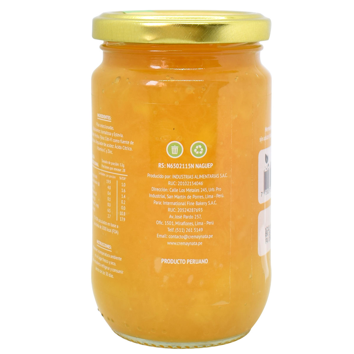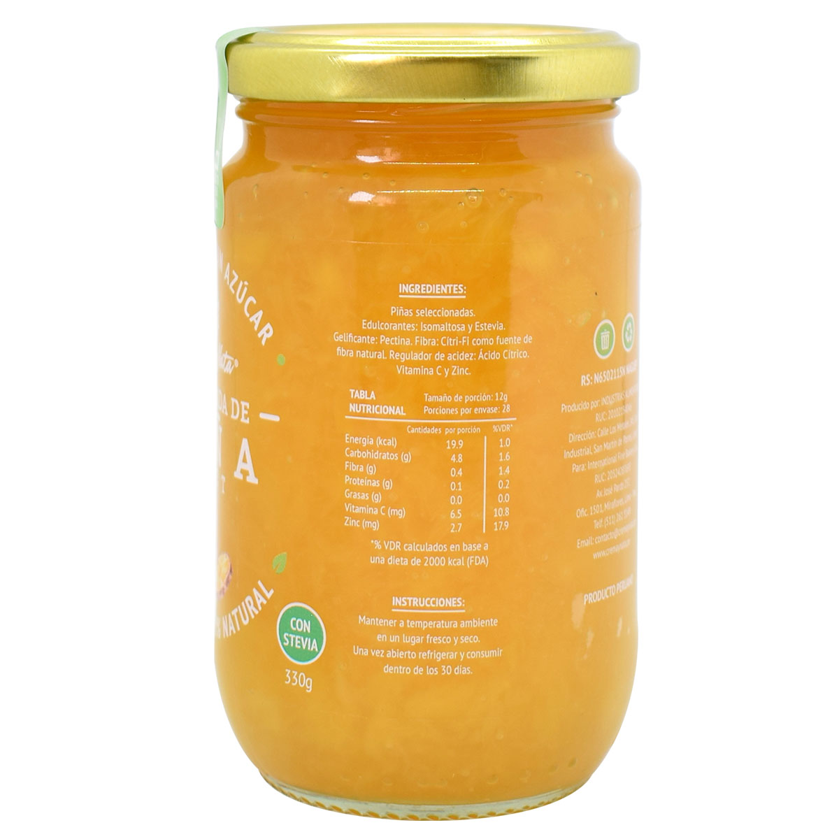 “Eating is a necessity, but eating smart is art,” is the slogan that all jams from Crema & Nata share. Also, all jams are rich in prebiotic fiber, zinc, and, vitamin C regardless of the benefits of each one of the fruits. For this reason, Crema & Nata’s jams are considered to be functional and nutraceutical. Sugar-free pineapple jam can be consumed for everybody even for people with metabolic disorders such as diabetes or people who suffer celiac disorders since this jam has a low glycemic index and caloric (45% fewer calories compared with a traditional jam.)