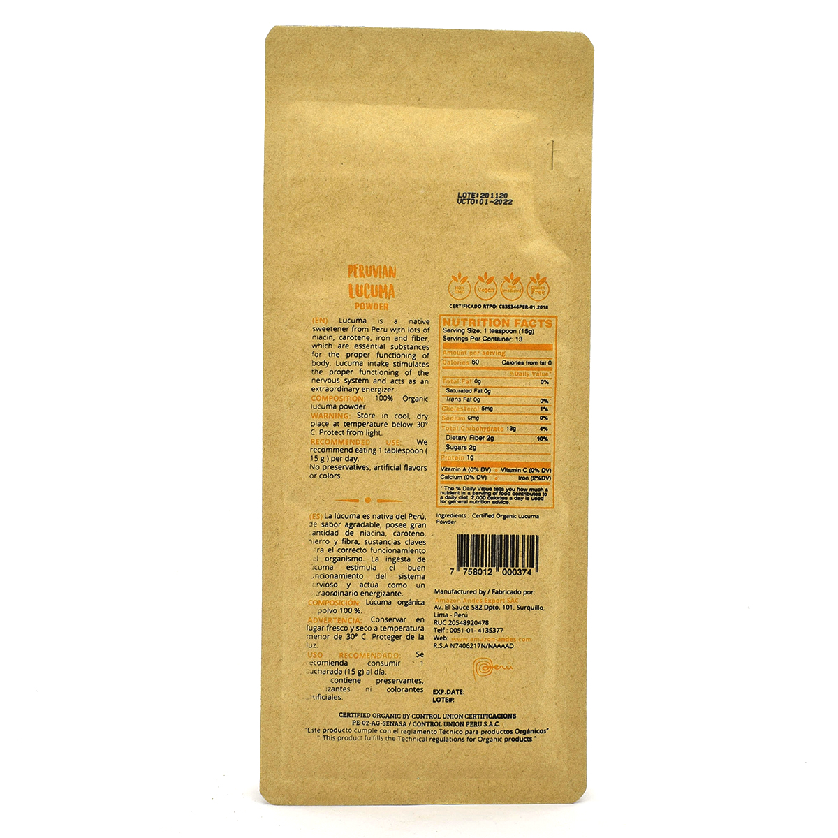 Lucuma Obovata) is native to Peru. This fruit is sweet and contains niacin, carotene, iron, and fiber. These properties are essential substances for proper body functioning. Lucuma intake stimulates the proper functioning of the nervous system and acts as an extraordinary energizer. Organic Lucuma Powder is obtained through the selection of the fruit that has been washed, disinfected (following an organic process), peeled, cut, dried, ground, sieved, and packaged in a way that all its biological properties aren’t lost.