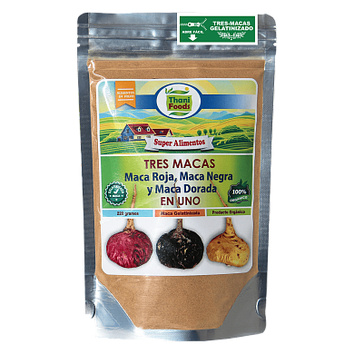 It is said that when Spanish conquistadors landed in the Inca empire, few animals resisted the expedition and they couldn't breed with normality. They were victims of the high temperatures of the Highlands, so they were dying one by one without giving legacy. The Indigenous of the zone recognized Maca as a great aphrodisiac, so they told the conquerors to feed their animals with it. The results were amazing since the animals could breed again. From that time to the present, Maca is known to be a millenary superfood from the Peruvian Highlands. Gelatinized Black Maca means that this root has been processed through extrusion where its starch molecules are neutralized or gelatinized. This provides better and faster absorption of its nutrients. This product combines three Peruvian maca ecotypes (