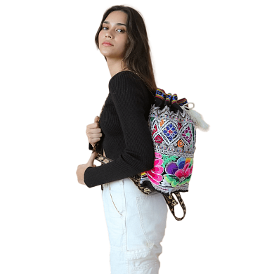 Handwoven bag made with 100% sheep wool. Also, this backpack is made by Highland’s artisans from Peru. This Baeta woven bucket backpack is made from artisans in Kcauri, which is located in Cuzco. They portray the design and colors of their traditional skirts in the backpacks. Killa Fibers works as a digital window to make known the talent of artisan from Cuzco of pure heart and to continue giving value to their work.