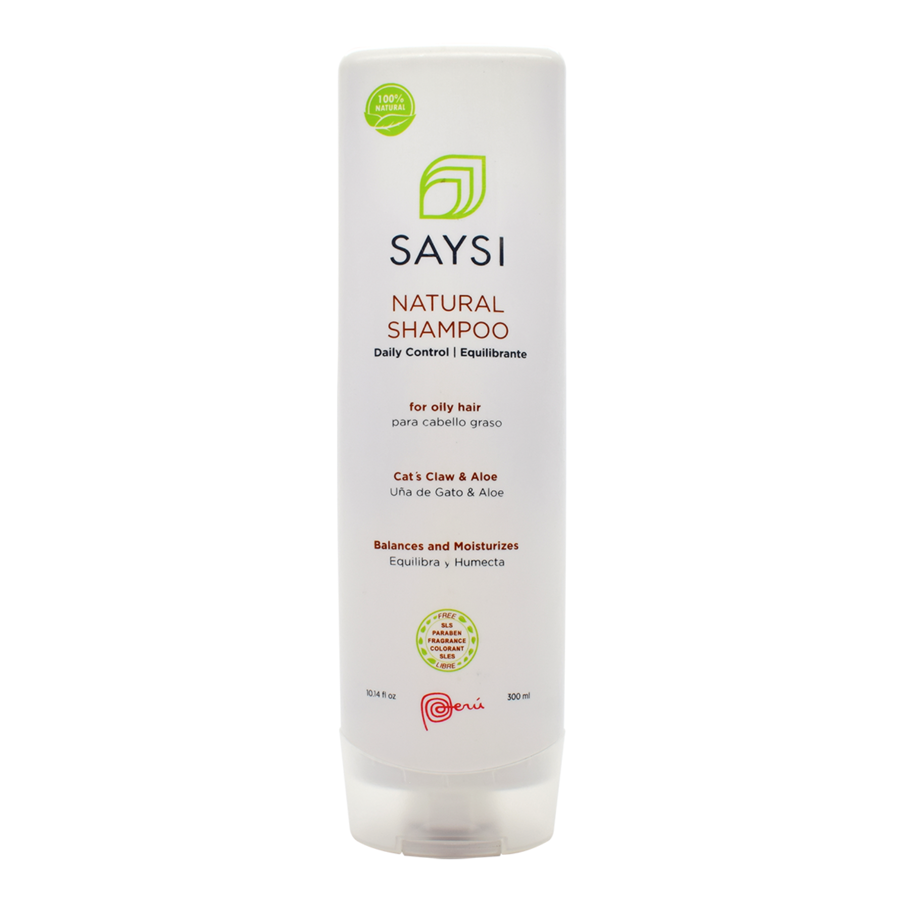 DESCRIPTION Right out of the Peruvian Jungle, cat's claw is a curative plant known to be the Amazon's miracle of herbal medicine. It's said that this herb fights off illnesses that attack our immunologic system. Likewise, aloe vera is a plant that many people in Peru use for the medicinal and healing properties that are attributed to it. The usage of this plant backs to human origins. Saysi has created for you the Natural Daily Control Shampoo innovative formula with 100% natural extracts of cat's claw and aloe to provide a silky and manageable hair. This shampoo deeply cleans your hair keeping it healthy and protected.