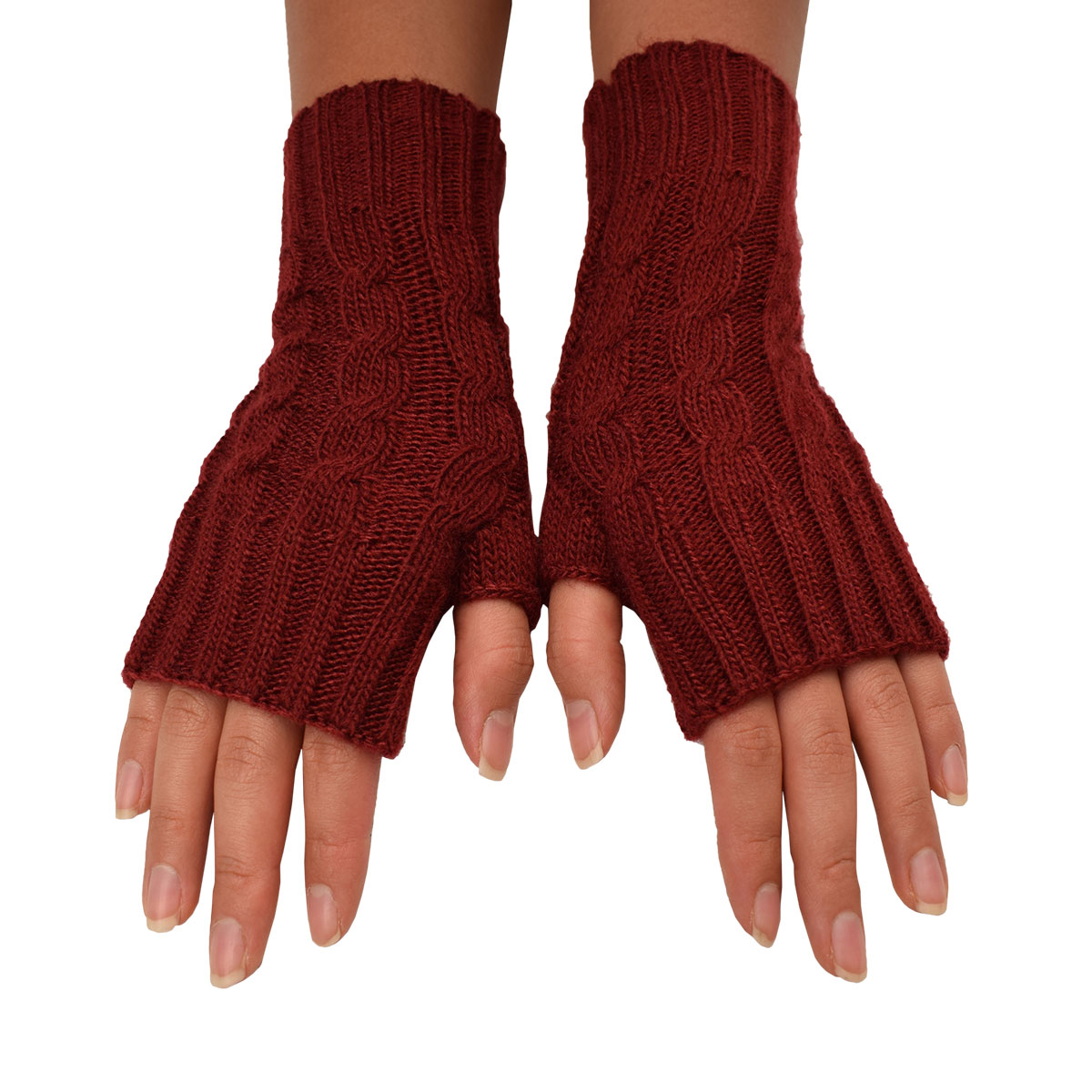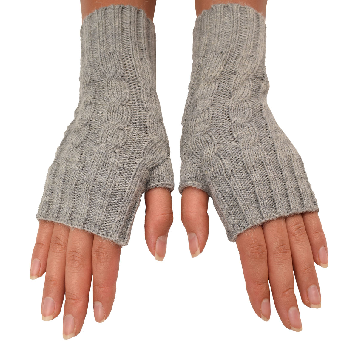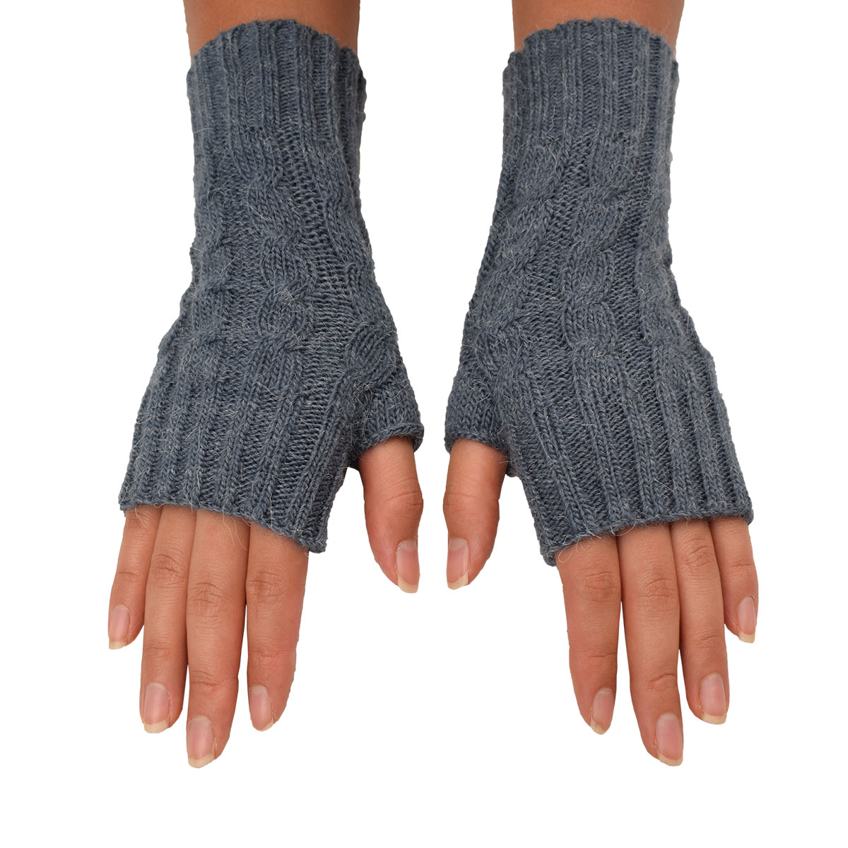 Knit fingerless gloves made of 50% alpaca fiber for winter.