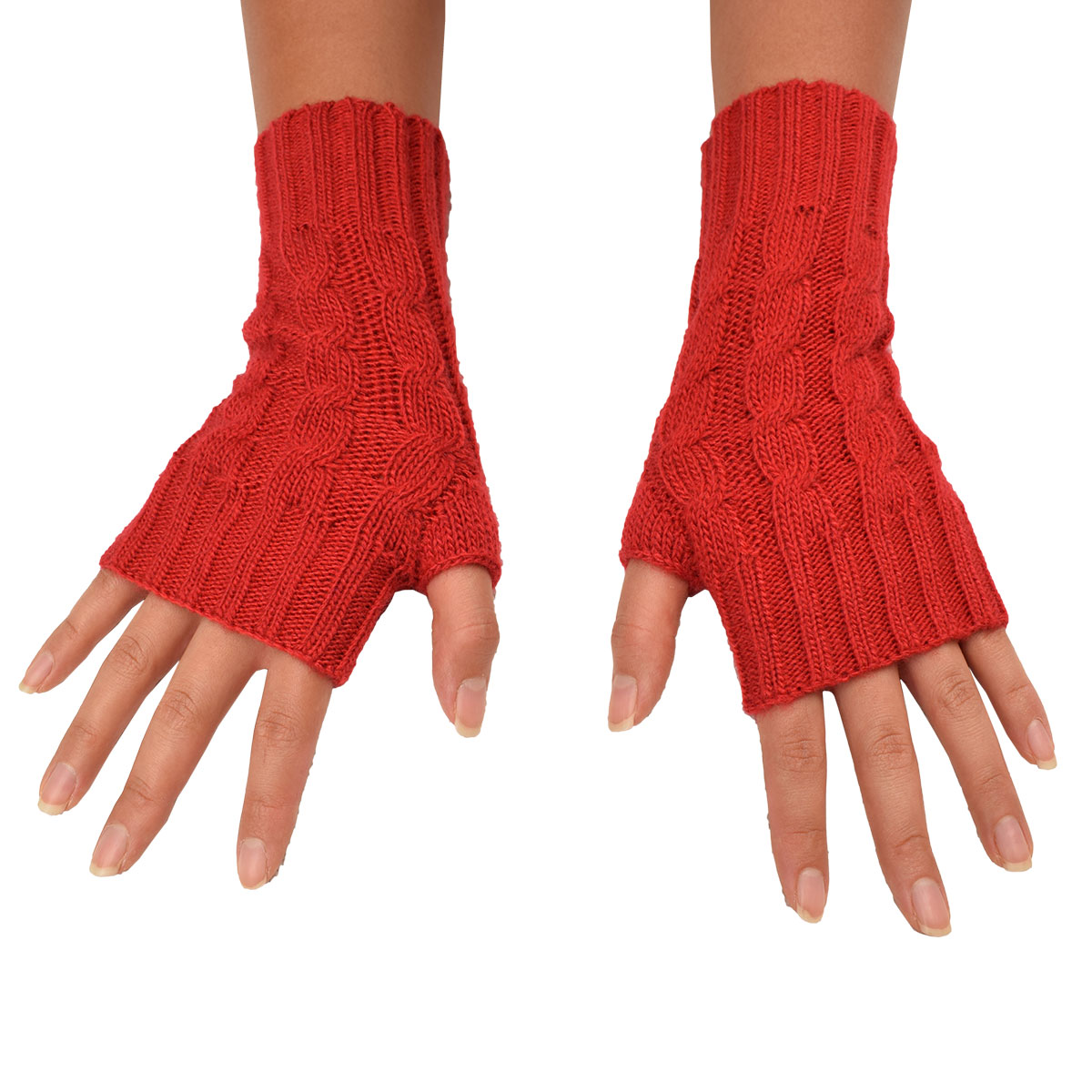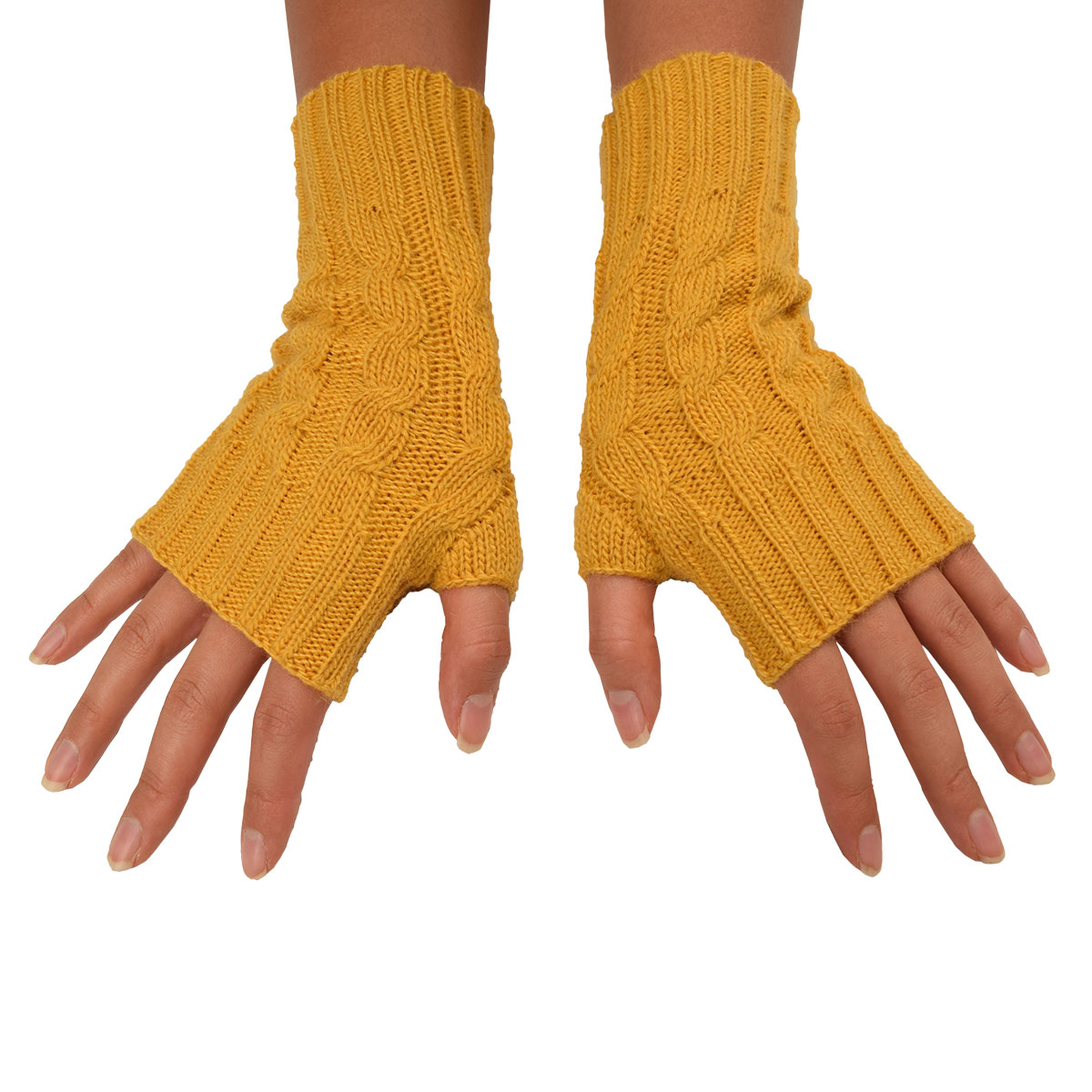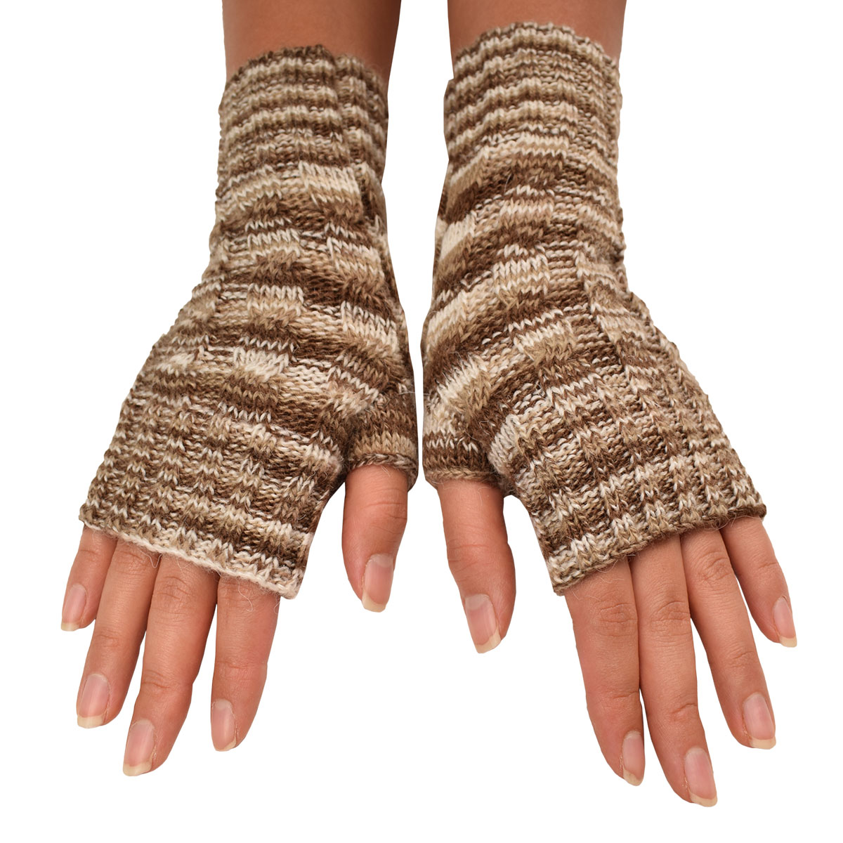 Knit fingerless gloves made of 50% alpaca fiber for winter.