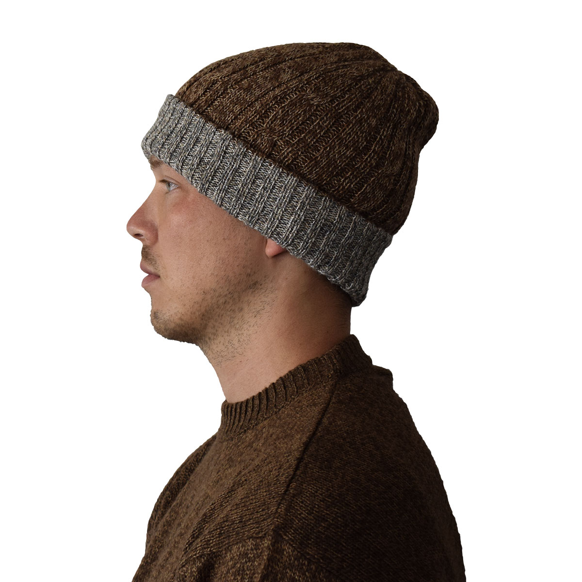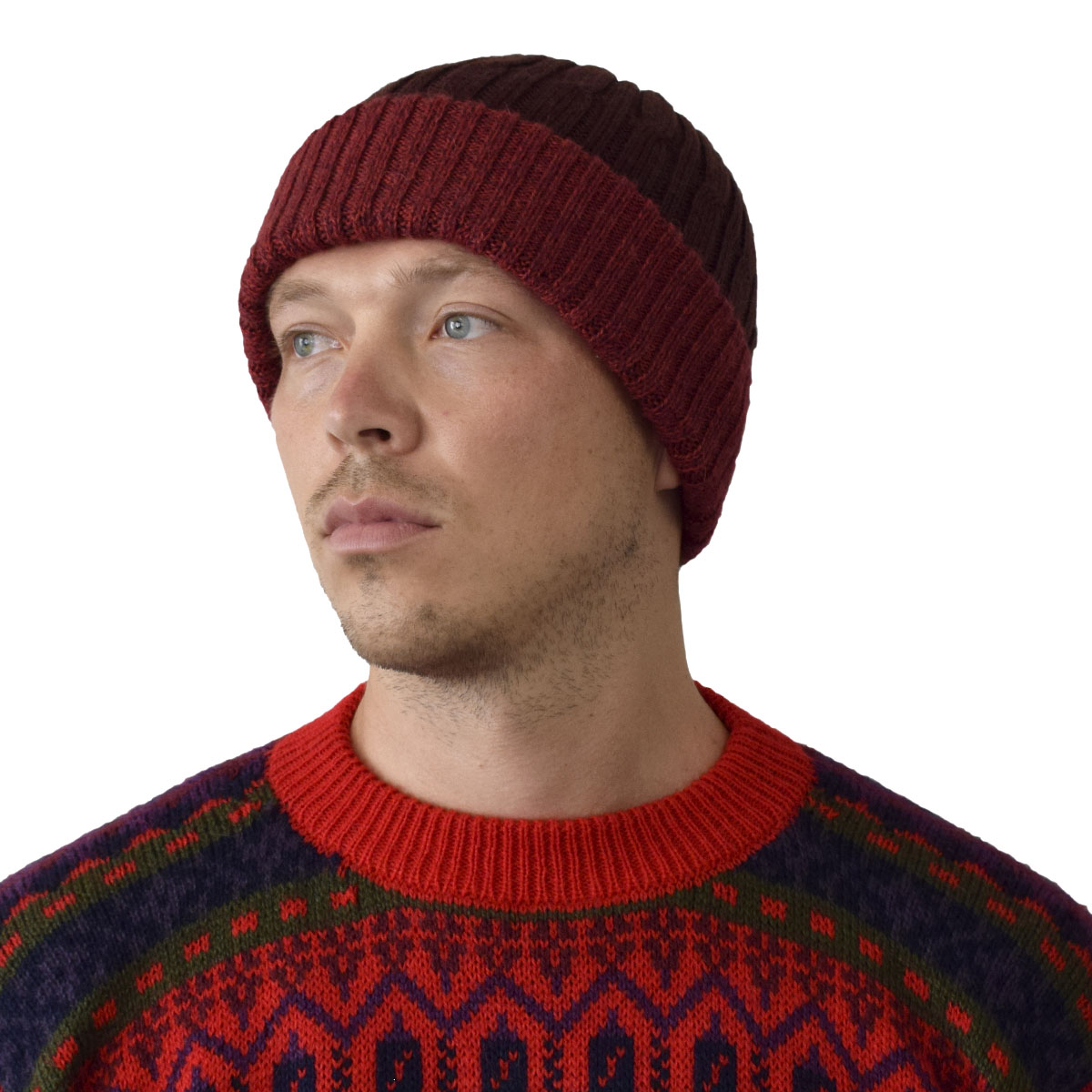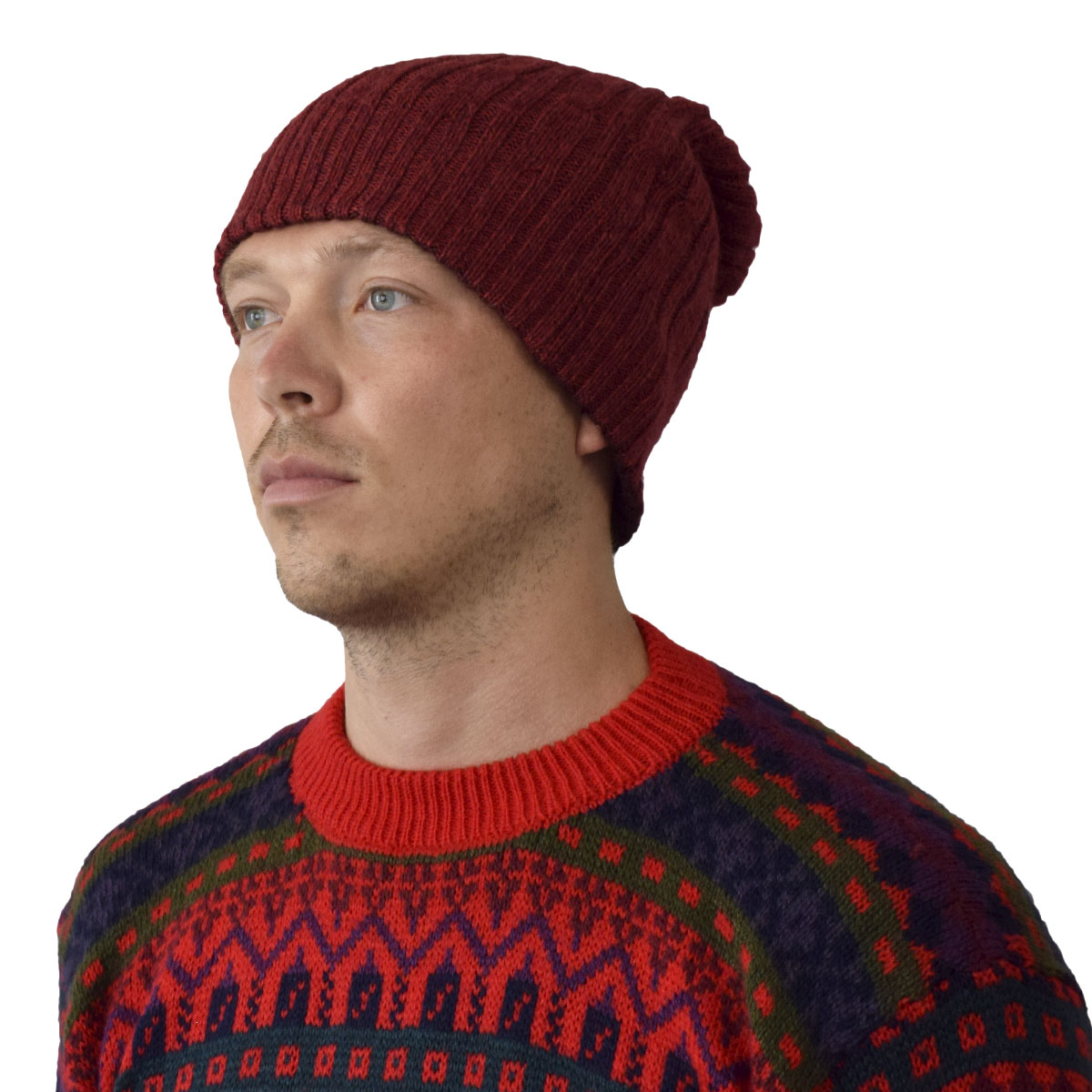 Knit cuffed benie for winter. Made of 60% alpaca fiber.