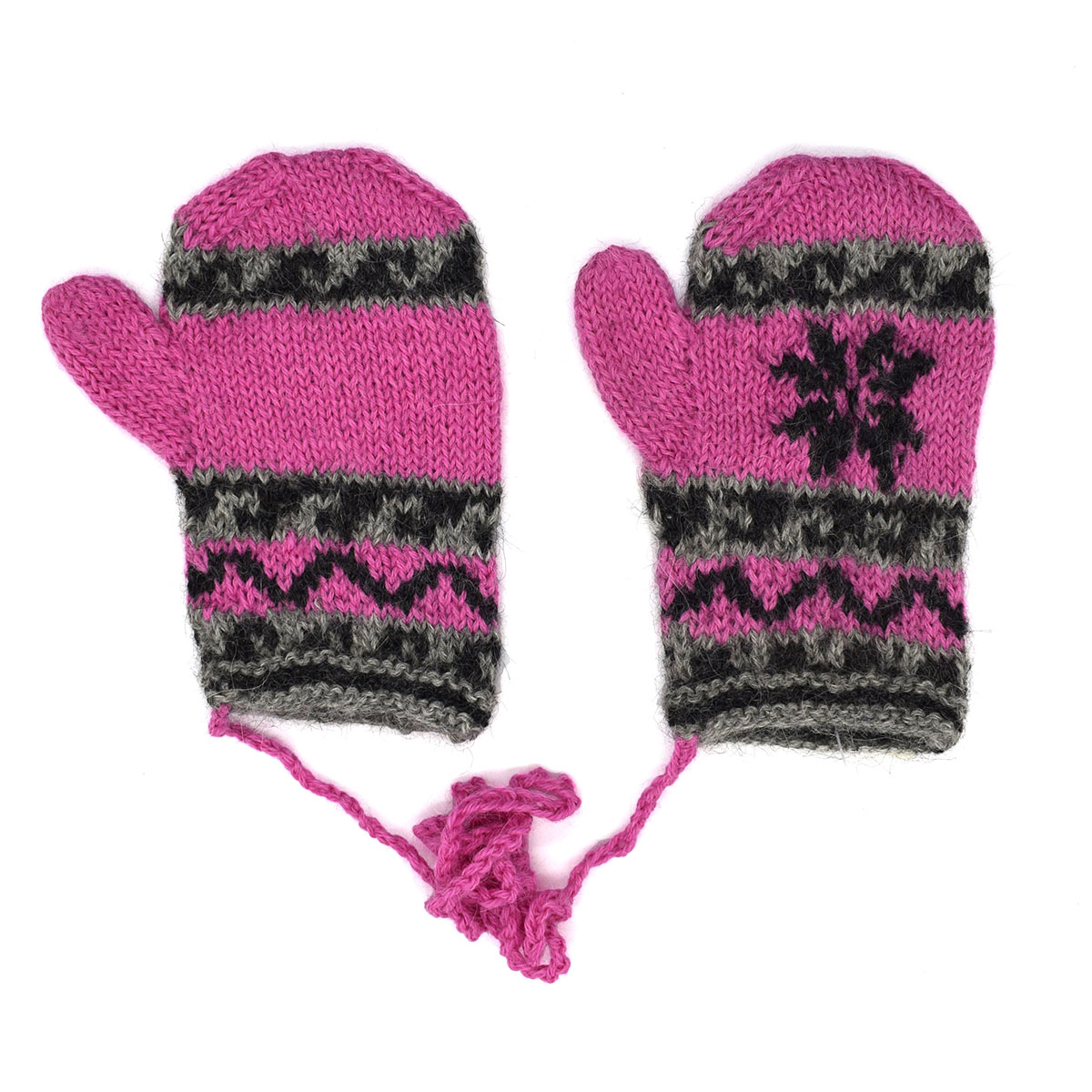 Handmade mitten made of 100% superfine alpaca. This mitten comes in two mixes of colors: cream (pink and fuchsia) and anthracite gray (gray and fuchsia).