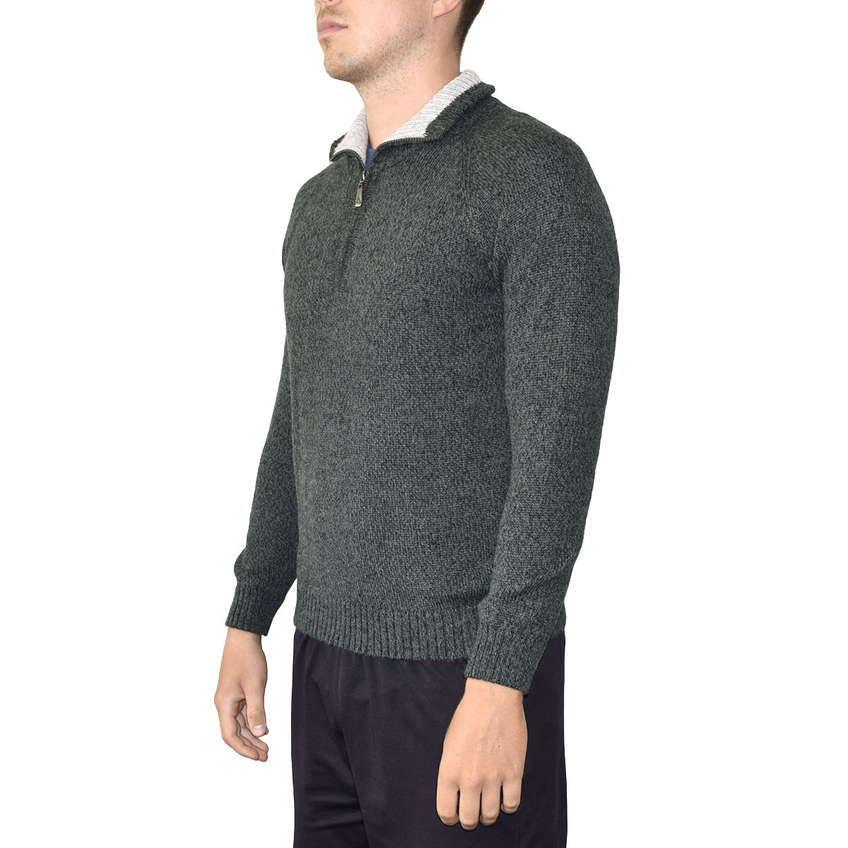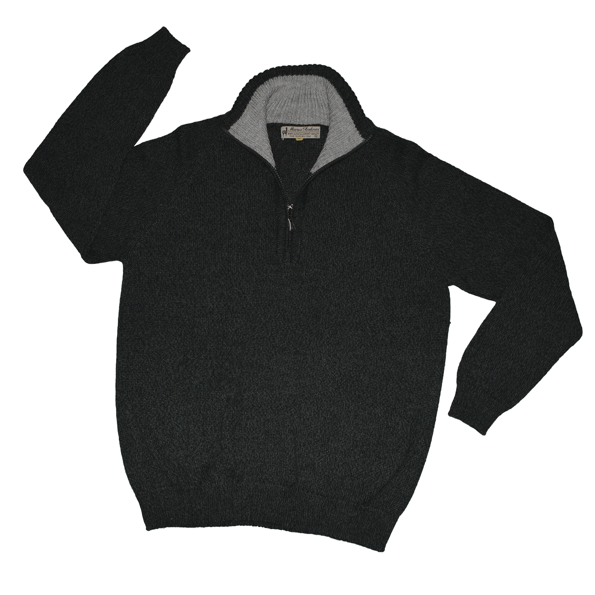Turtleneck sweater with zipper made of 60% baby alpaca fiber.