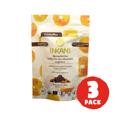 From the Amazon rainforest, the wisdom of nature. The relationship that the Ashaninkas have with nature is essential to be able to tell the story of Inkani. Organic cacao beans (criollo variety) come from the Ashaninkas, whose culture inspires the brand. For them, nature is sacred and the land gives birth to the purest single-origin criollo cacao. Enjoy this delicious dried golden berry covered in organic chocolate with 65% of cacao.