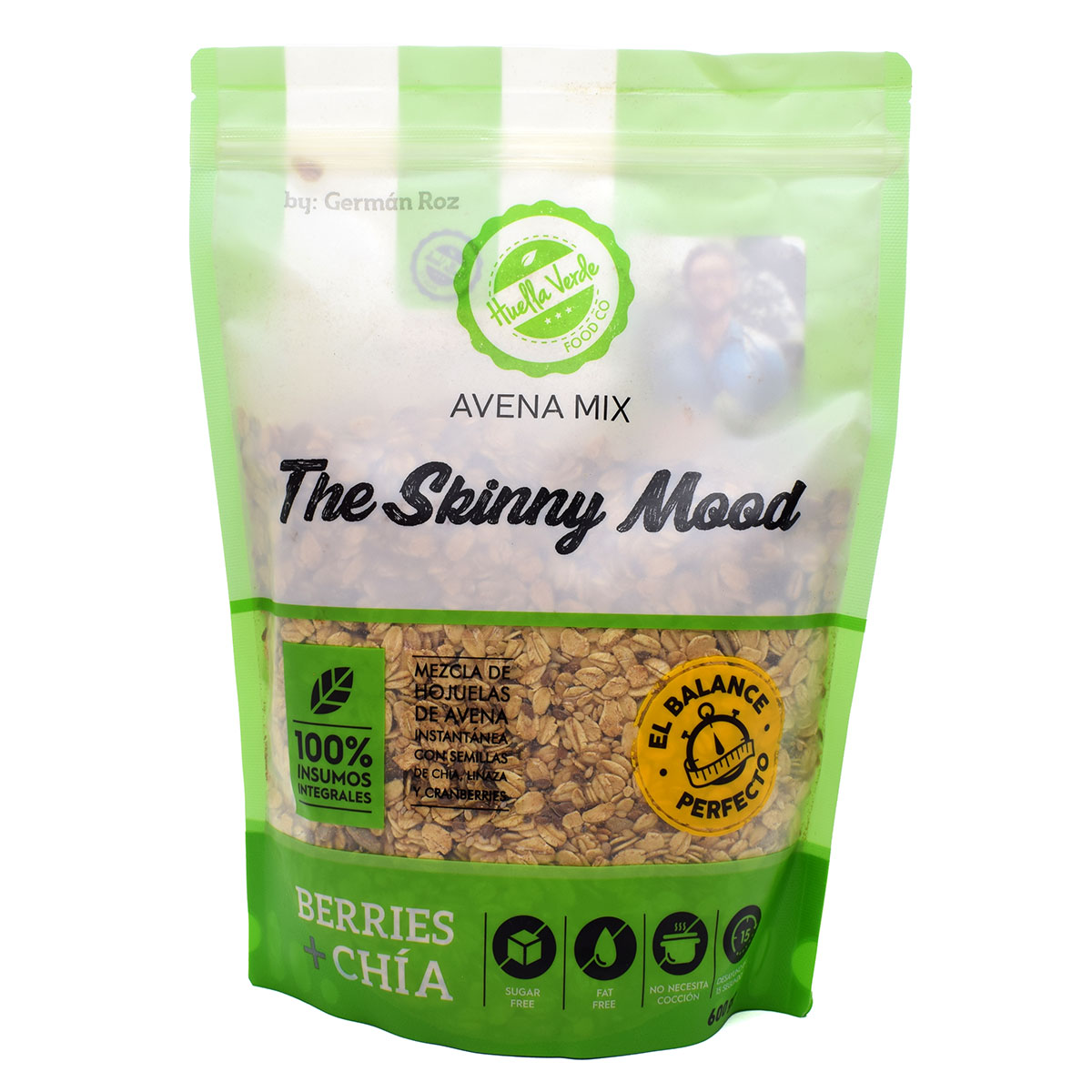 Instant rolled oat mix with chia seeds, flaxseed, and cranberries. Skinny Mood oatmeal mix has a perfect balance, which boosts the digestive system and fat loss. It contains essential minerals for the proper functioning of the body as calcium, phosphorus, and potassium. Also, it is high in good fats that help keep us full all the time. This mix gives you a daily dose of nutrients and micronutrients.