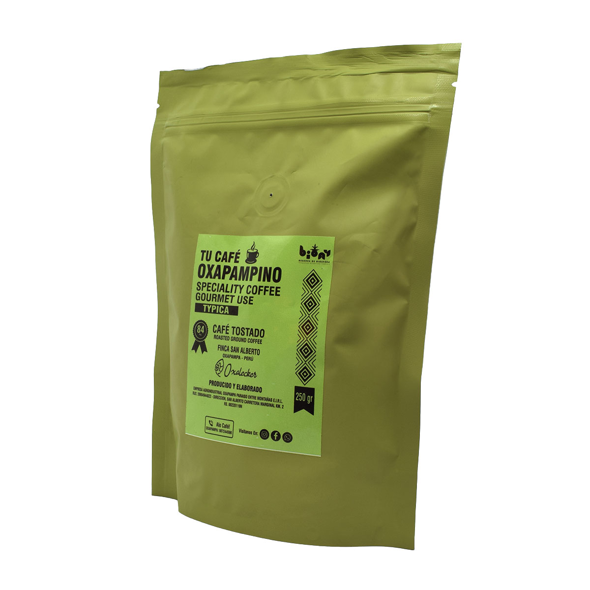 This coffee is brought directly from Oxapampa, Junin. This gourmet coffee is made Typica variety ground coffee beans with a Q grading of 84 points.