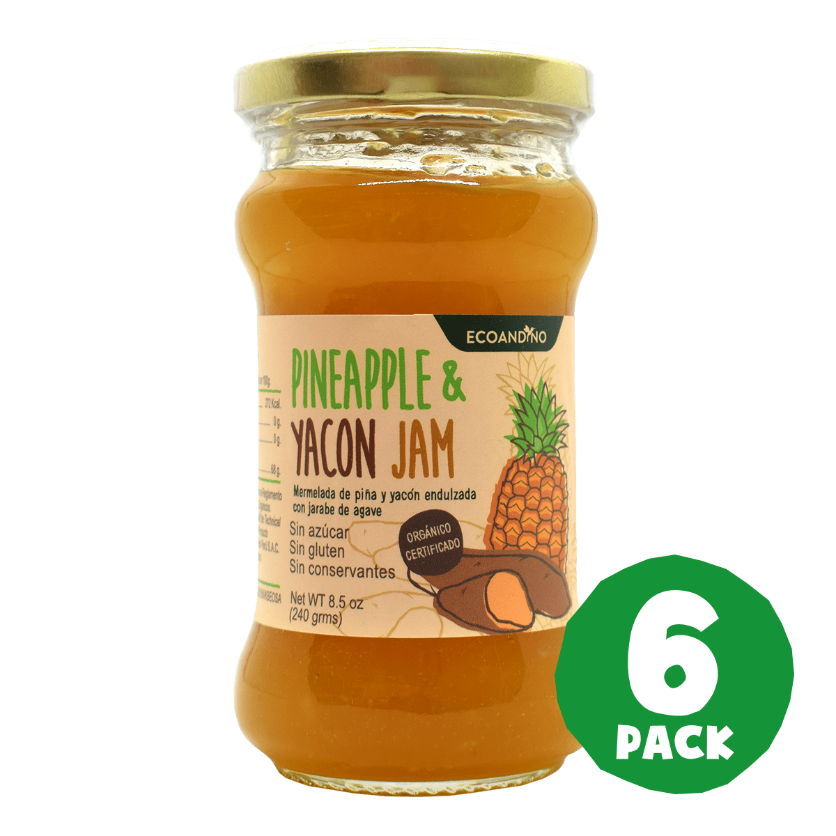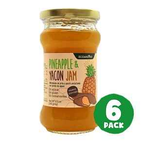 Delicious jam made of pineapple (Hawaina variety) with a delicate aroma and flavor. The main ingredient is a good source of dietary fiber. This jam is also made with yacon, a natural and rich source of FOS (fructooligosaccharides). In addition, it is an excellent natural prebiotic sweetened with low glycemic index agave syrup to be enjoyed at any time of the day. Pineapple increases immunity helps digestion, and has a high content of vitamin C.
