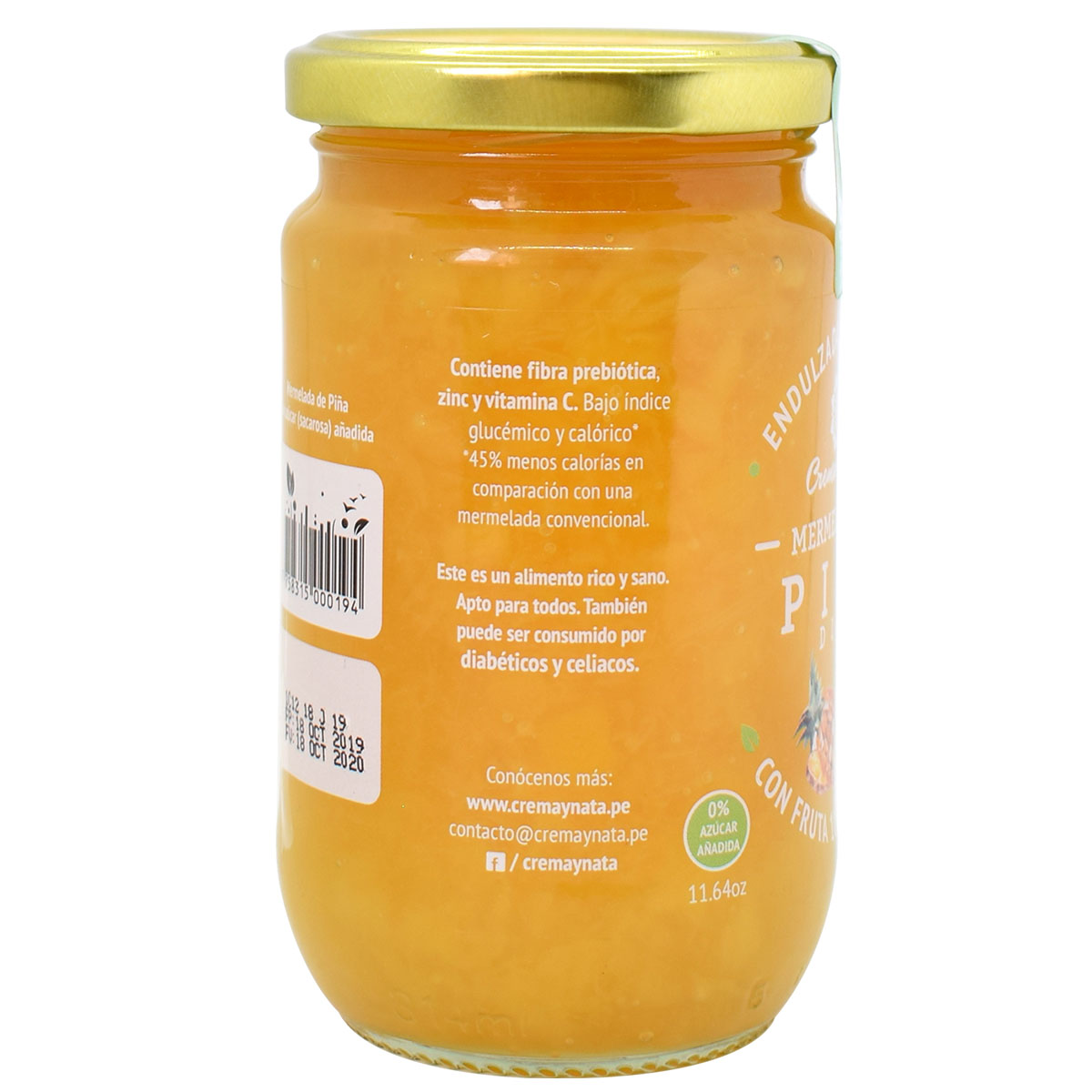 “Eating is a necessity, but eating smart is art,” is the slogan that all jams from Crema & Nata share. Also, all jams are rich in prebiotic fiber, zinc, and, vitamin C regardless of the benefits of each one of the fruits. For this reason, Crema & Nata’s jams are considered to be functional and nutraceutical. Sugar-free pineapple jam can be consumed for everybody even for people with metabolic disorders such as diabetes or people who suffer celiac disorders since this jam has a low glycemic index and caloric (45% fewer calories compared with a traditional jam.)