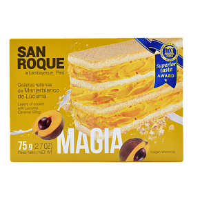This traditional Peruvian dessert was made in Lambayeque since 1920. The creation of this dessert born of a group of women from Lambayeque that wanted to provide food to settlers who were lack of resources. So, they started to bake this dessert in the house of Mrs. Victoria Mejia de Garcia. Her house was located in the street called “San Roque”, which nowadays is called “Dos de Mayo”. Meanwhile, the very known name of this dessert “King Kong” born from the popular movie “King Kong” that was released in Peru by 1933. People from the region associated the name with the so delicious dessert. “Magic” is the name that these layers of cookies with lucuma caramel filling are related.
