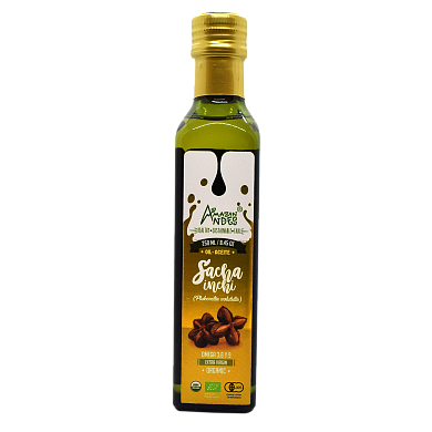 Plukenetia volubilis linneo) contains more than 50 % of vegetable protein. Sacha inchi is rich in alpha-linolenic omega 3 and linoleic omega 6. These fatty acids can regulate and reduce cholesterol. This oil could be used to restructure, fortifie and protect skin, hair, and nails; also ideal for the ones who have delicate skin. Vitamin E plays an essential role in skin regeneration and the unsaturated fatty acids nourish, prevent and treat skin and hair problems. Sacha Inchi grows in Madre de Dios, Huanuco, Oxapampa, San Martin, Rodriguez de Mendoza, Ucayali’s basin, Putumayo, Iquitos, and Caballo Cocha surrounding areas.