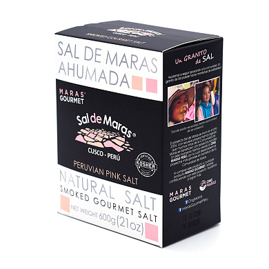 Pink salt is hand-harvested at high altitudes by small farmers. This salt grows at Maras in the Sacred Valley, between Cusco and Machu Picchu at 4000 masl. The salt extraction from natural pools has been a traditional work from Maras communities for centuries—since the Inca empire. The saltwater strains from the ancient ocean that was covered by the Andes. Along its way, the water gathers minerals and nutrients that mix with salt and complement its delicate flavor. This natural pink salt of coarse grain is high in mineral content. Recommended by chefs for use in the gourmet kitchen in the preparation of meat, fish, salads, etc. This Peruvian salt is smoked over almond and orange wood.