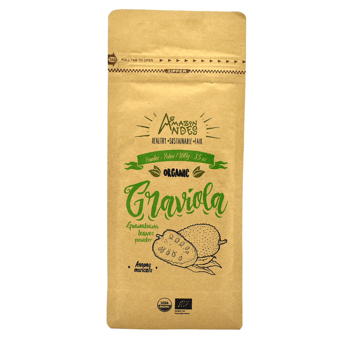 Graviola, or also called soursop, is a superfood native to the Peruvian Jungle. Mostly, it is cultivated in Chanchamayo, Junin. According to popular medicine, Graviola was utilized for therapeutic purposes to fight gastritis, inflammation, and cancer. There are no studies that confirm those beliefs, but there is some research about the first appearance of Graviola in ancient Peru. Archaeological investigations prove that this fruit not only has been cultivated in the Peruvian Jungle but to North of Peru 1000 B.C., which was portrayed in the Chimu pottery culture (Pozorski & Pozorski, 1997). Graviola Capsules (