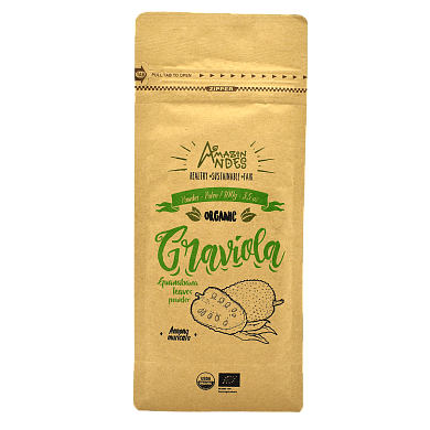 Anona muricata L.) benefit our health because of the high content of ascorbic, lactic, malic, and citric acid it has. Besides, it has minerals (iron, phosphorous, calcium) and vitamins (A, B1, and B2). Graviola is used as a supplement in some types of pains caused by swelling. It also helps to stabilize high blood pressure and improves the blood sugar level in the organism. Organic Graviola powder is obtained through the selection of this fruit. After that, fruits are washed, disinfected (following an organic process), pulped, cut, dried, ground, sieved, and packaged in a way that all its biological properties aren’t lost.