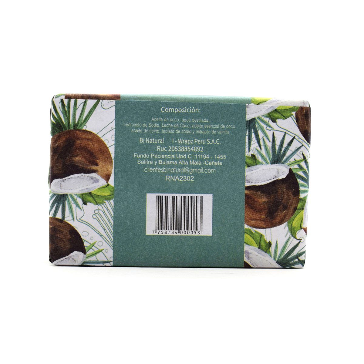 Handcrafted soap - Coconut, 5.29 oz (150 g): Coconut oil, distilled water, sodium hydroxide, coconut milk, coconut essential oil, castor oil, sodium lactate, and vanilla extract