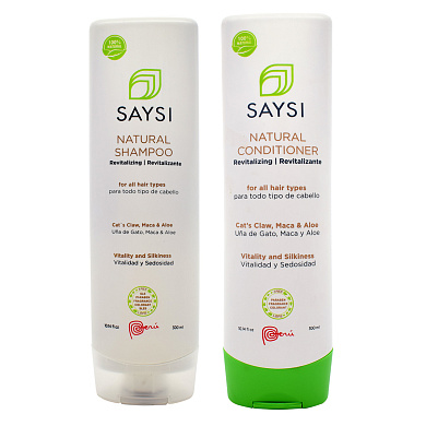 Right out of the Peruvian Jungle, cat's claw is a curative plant known to be the Amazon's miracle of herbal medicine. It's said that this herb fights off illnesses that attack our immunologic system. Likewise, aloe vera is a plant that many people in Peru use for the medicinal and healing properties that are attributed to it. The usage of this plant backs to human origins. Additionally, maca is considered an ancestral superfood utilized since pre-Incan times for its protein content. Always thinking of you, Saysi has created the Natural Revitalizing Shampoo innovative formula to leave your hair smooth and manageable. Also, it will leave your hair deeply clean. Enriched with 100% natural extracts of cat’s claw, maca, and aloe, this shampoo helps to protect your hair by restoring its vitality and shine.